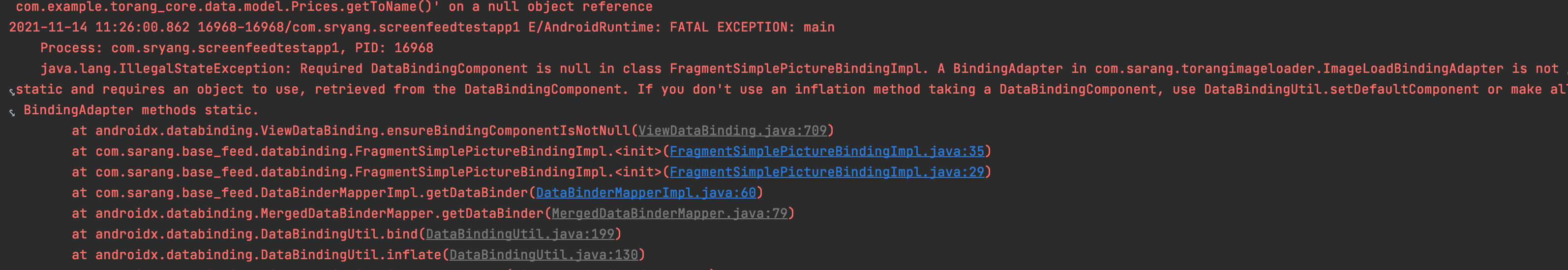 데이터 바인딩 어뎁터를 변환하면서 스태틱 변환이 잘 못 된 것 같습니다.