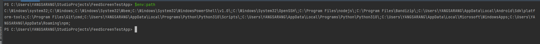 $env:path 를 입력하면 현재 설정되어있는 경로를 확인 할 수 있습니다.